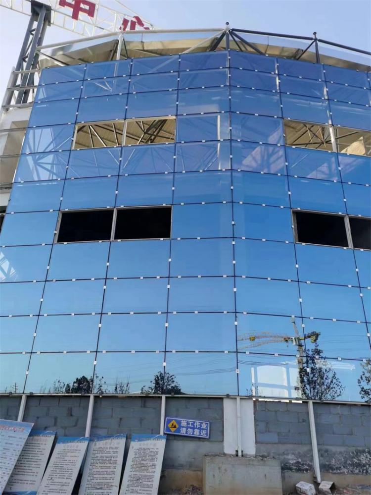 玻璃幕墻的玻璃可以分為普通玻璃、鍍膜玻璃、夾層玻璃等幾種材料。玻璃幕墻安裝中使用的夾層玻璃也就是俗稱的夾膠玻璃,它是由兩片或者兩片以上的玻璃,在中間層中有一種透明的有機材料。這種材料一般是聚乙烯醇縮丁醛俗稱PVB或者離子膜夾在兩塊玻璃之間。使用這種玻璃的玻璃幕墻在施工完畢以后,它的抗沖擊力和抗貫穿力很強。在受到外來力的時候,無論玻璃是垂直或者傾斜安裝在幕墻上,事都可以抵擋外來撞擊的穿透力。